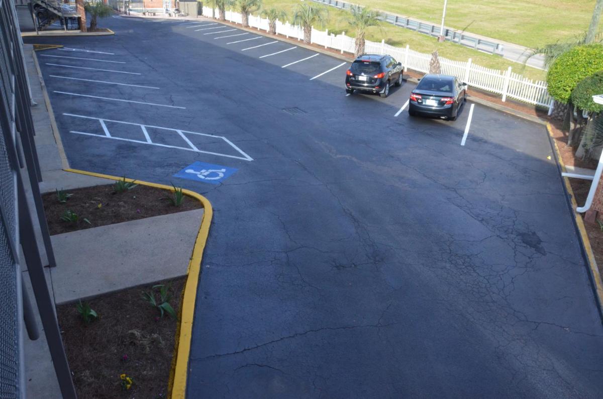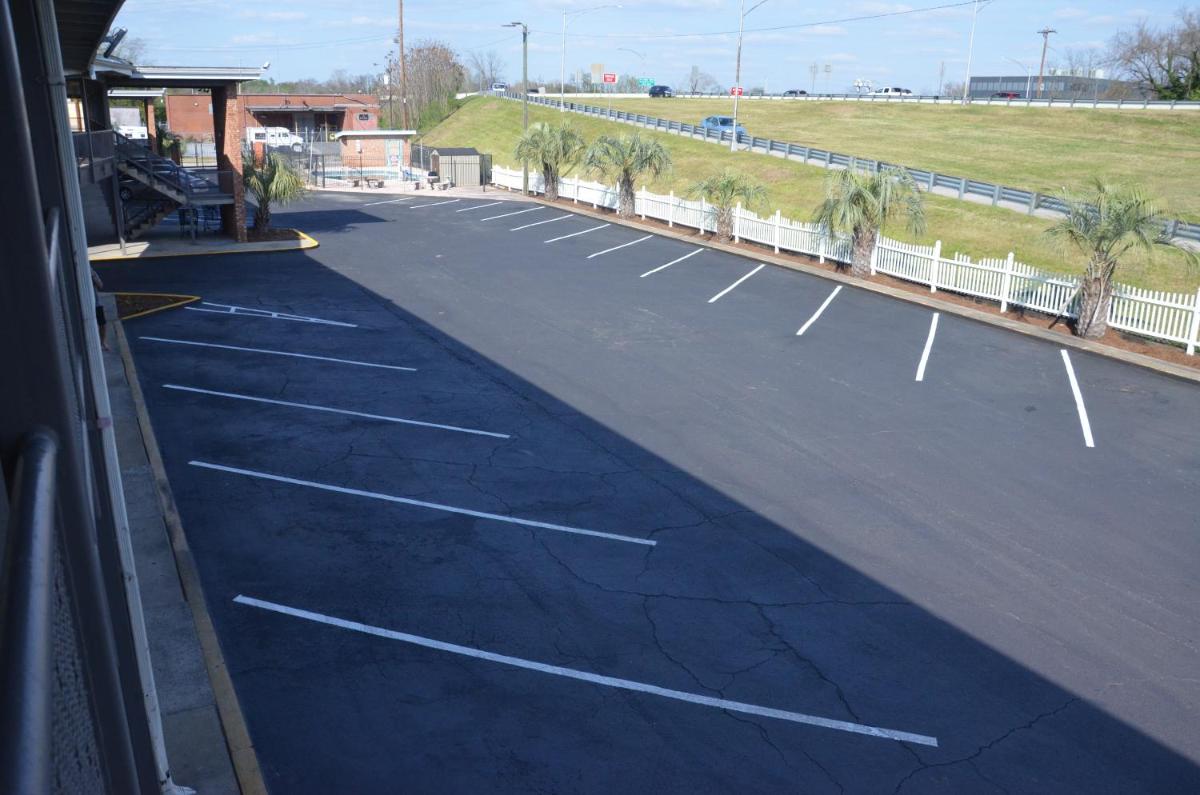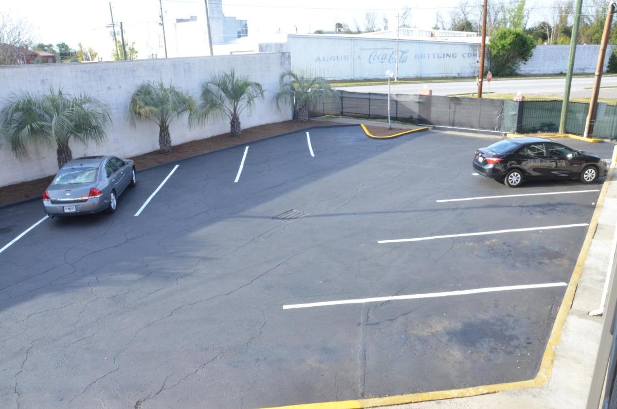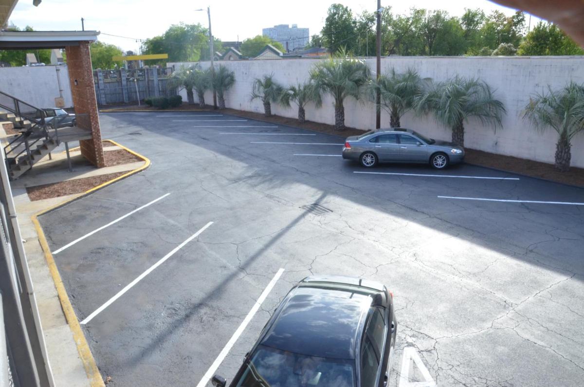 The gallery reflects a no-frills downtown stay, with images focusing on compact guest rooms, exterior views along Broad Street, and shared outdoor areas. Photos highlight practical layouts, simple furnishings, and the seasonal outdoor pool. The surrounding streetscape reinforces the hotel’s central location, placing guests steps from Augusta’s historic district rather than behind resort-style grounds.